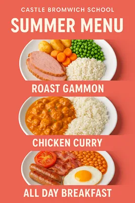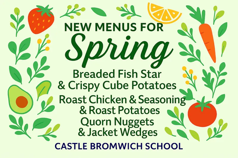 The lunches at Castle Bromwich Junior School are created with care by passionate staff who takes pride in the food they supply your children with. They aim to provide each and every child with a healthy, nutritious meal that will stimulate the brain to aid each individual to achieve their potential. The lunches available to your children are either meat dish, vegetarian dish, or a sandwich/wrap. Each meal is accompanied by a choice of potatoes, vegetables and salad. Alongside the delicious meal your child chooses, they are able to pick from a range of puddings to indulge in - all for just £2.90.